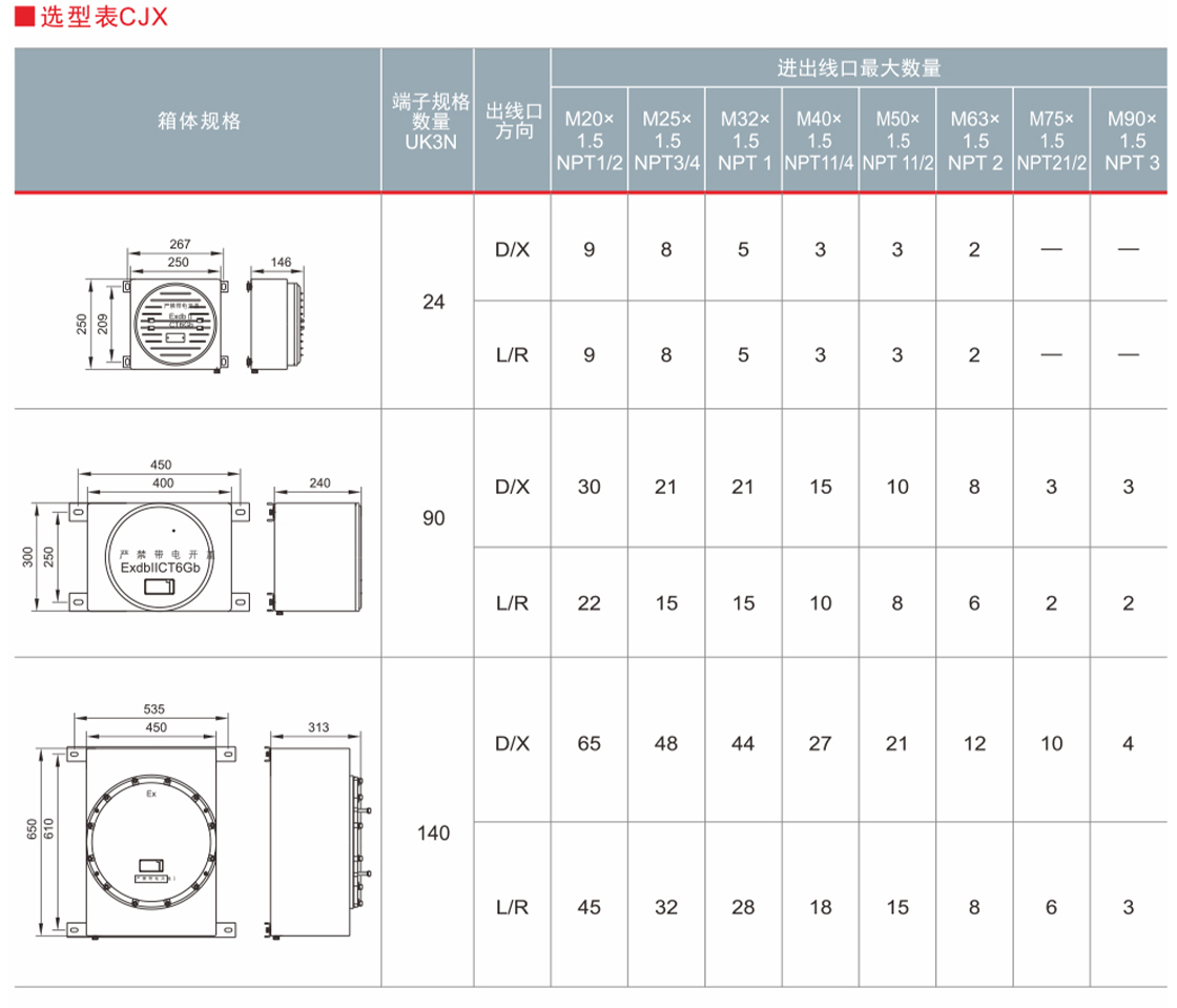 3.进出线口有多种方式及规格: